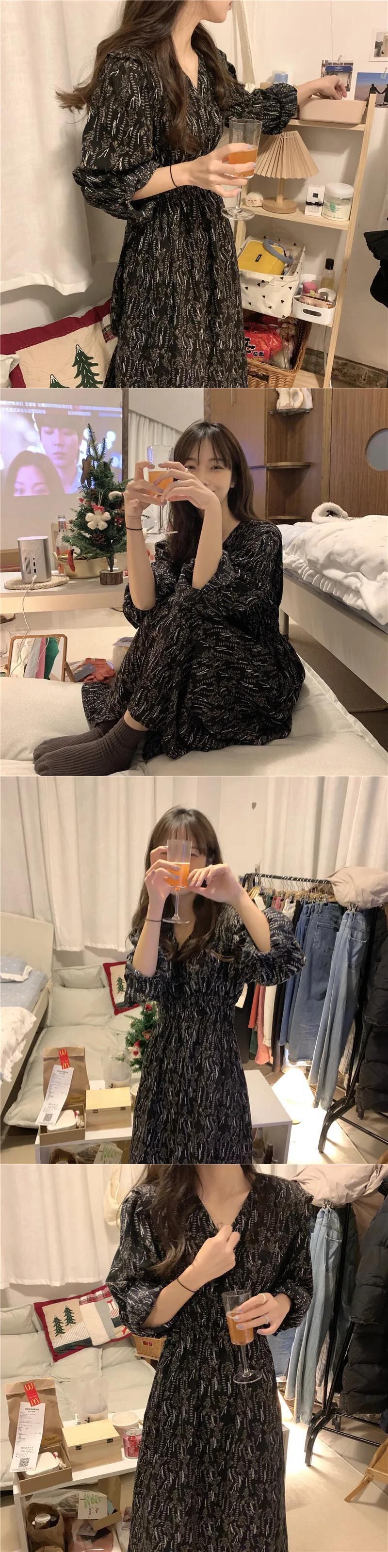 送料無料 ロングドレス長袖 V ネック花柄プリントレトロヴィンテージ A ラインボディコンドレス女性シックな Vestidos 春 2023 スプリング 春物 Vネック Aライン ビンテージ AE008878781285395469