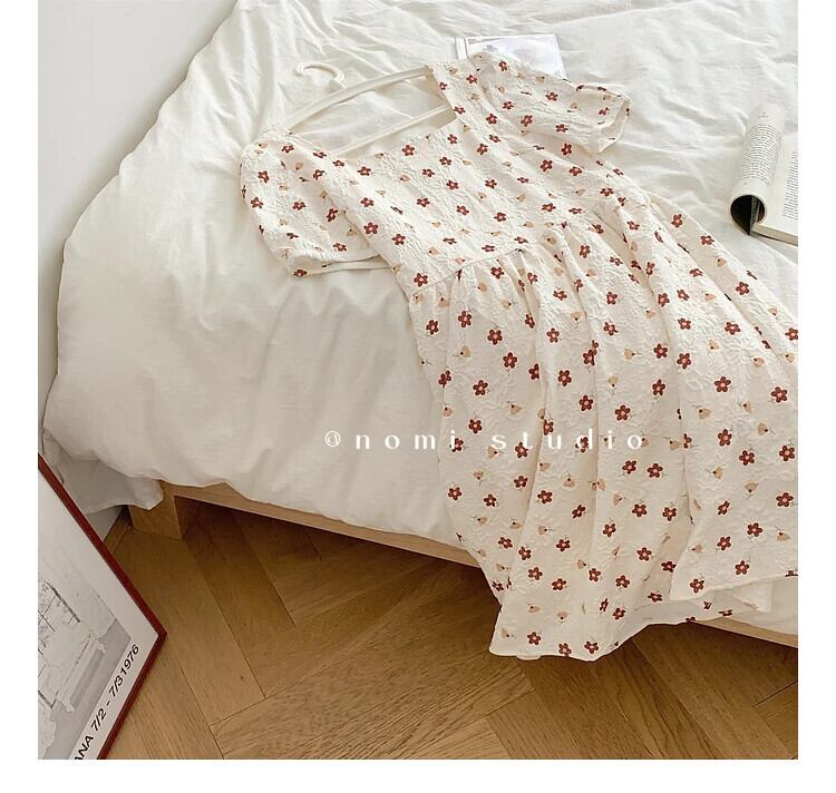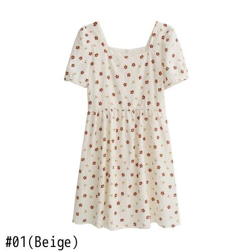 送料無料 ヴィンテージスタイル印刷スクエアカラーショートパフスリーブパーティー花ミニドレスイブニング夏 2023 女性服 サマー 夏物 花柄 スクウェア ビンテージ AE008878775017480668