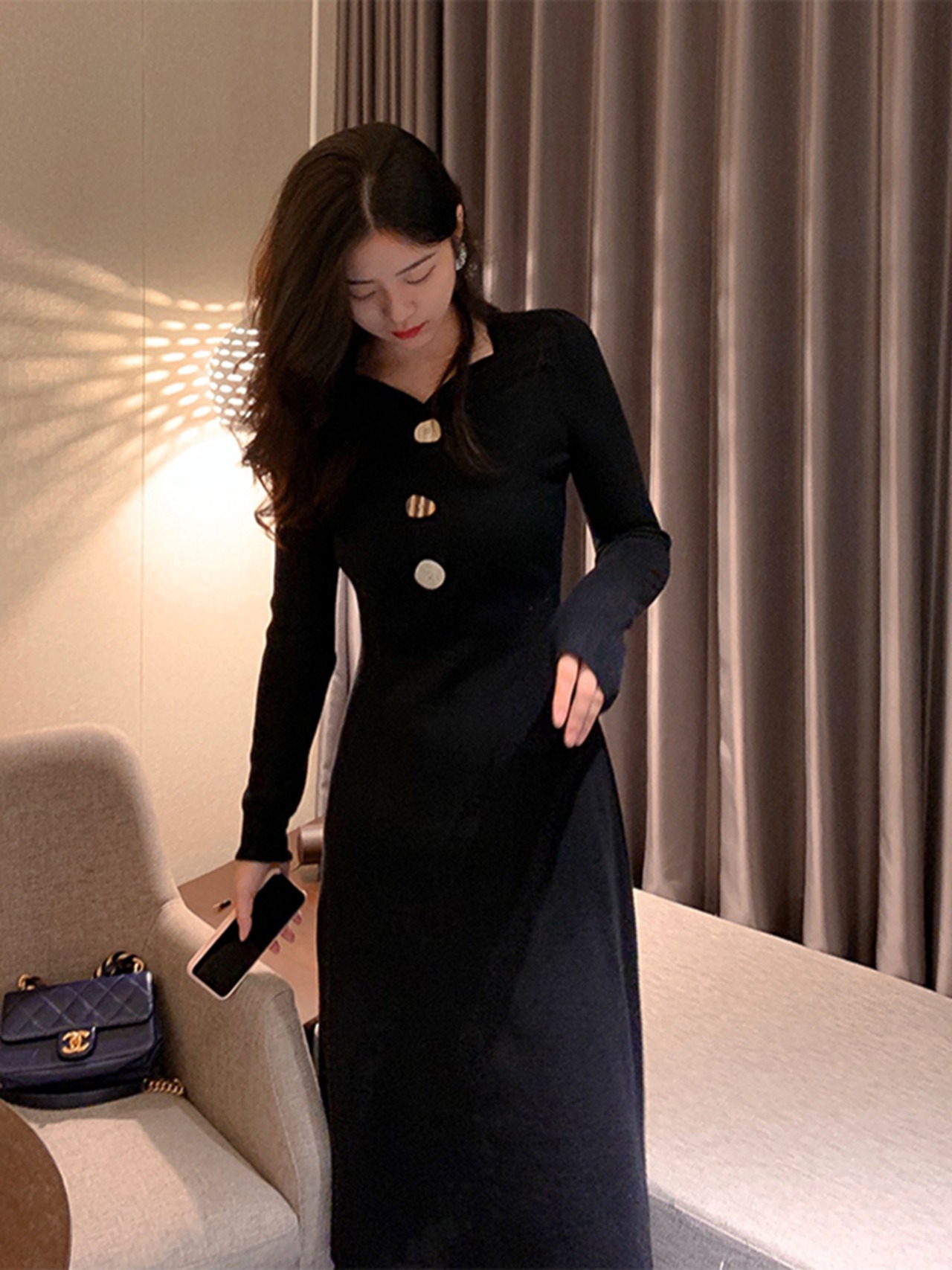 送料無料 ヴィンテージフレンチソリッド長袖 V ネックセーターニットマキシミディドレス女性ボディコンドレス秋 ロング オータム 秋物 Vネック ソリッドカラー ビンテージ AE008878730731662314