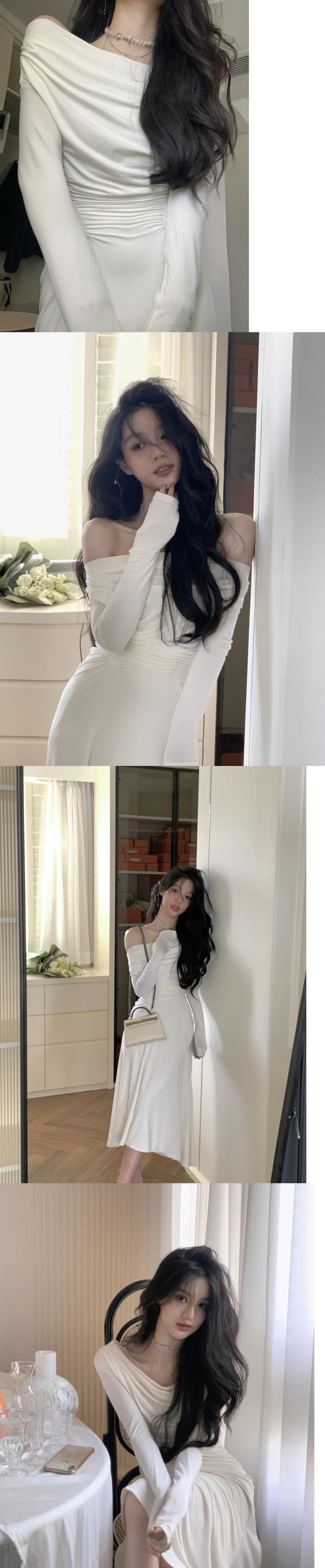 送料無料 ヴィンテージ長袖オフショルダーイブニングボディコンドレス女性のセクシーなパーティーレディ秋冬 2022 ロング オータム 秋物 ウィンター 冬物 ビンテージ AE008878724125706784