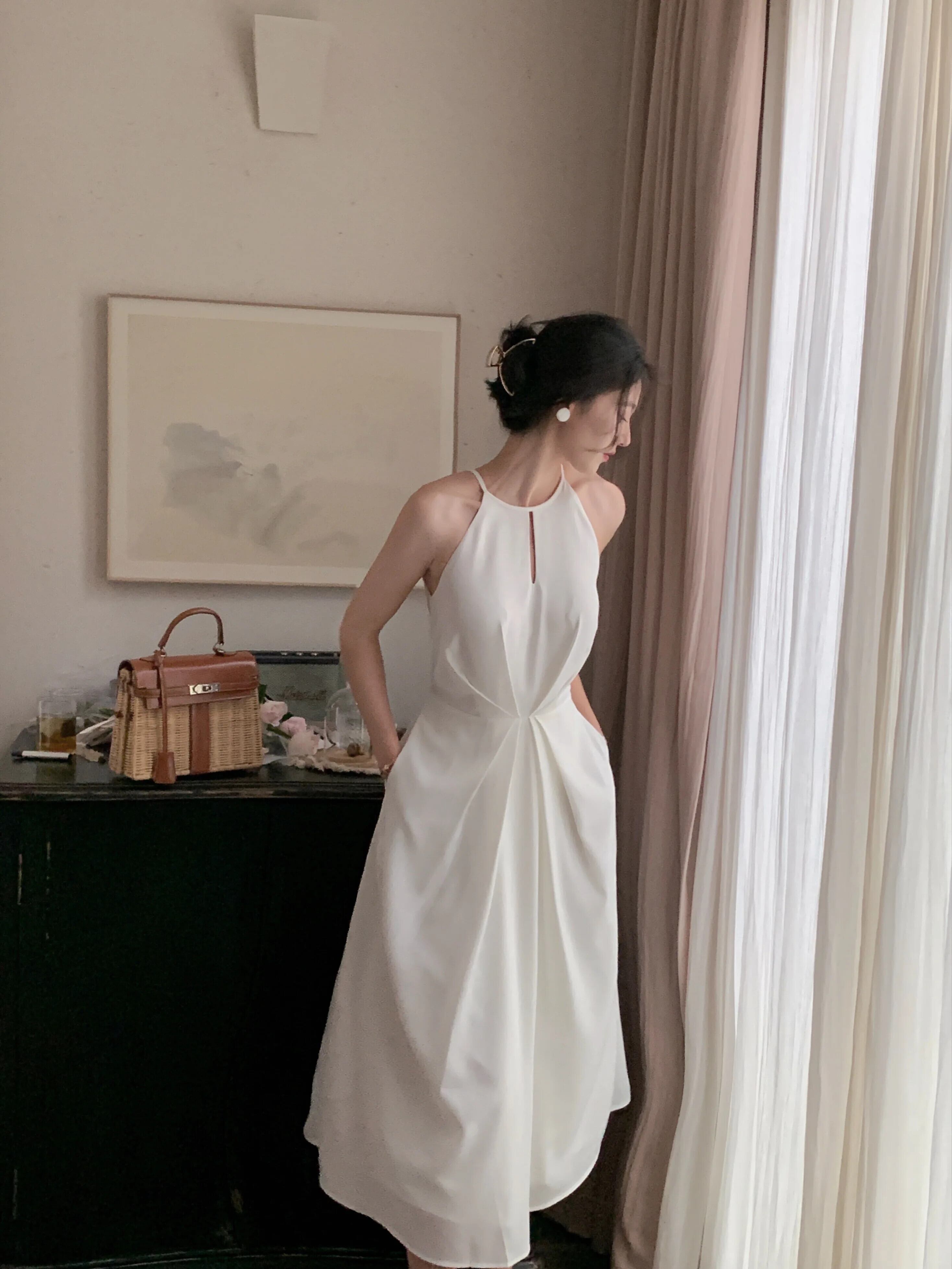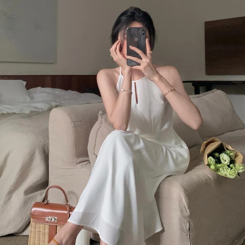 送料無料 ヴィンテージ固体ノースリーブシフォンドレス女性白いドレス Vestidos サスペンダー夏 2022 ホワイト サマー 夏物 ソリッドカラー ビンテージ AE008878765105113948