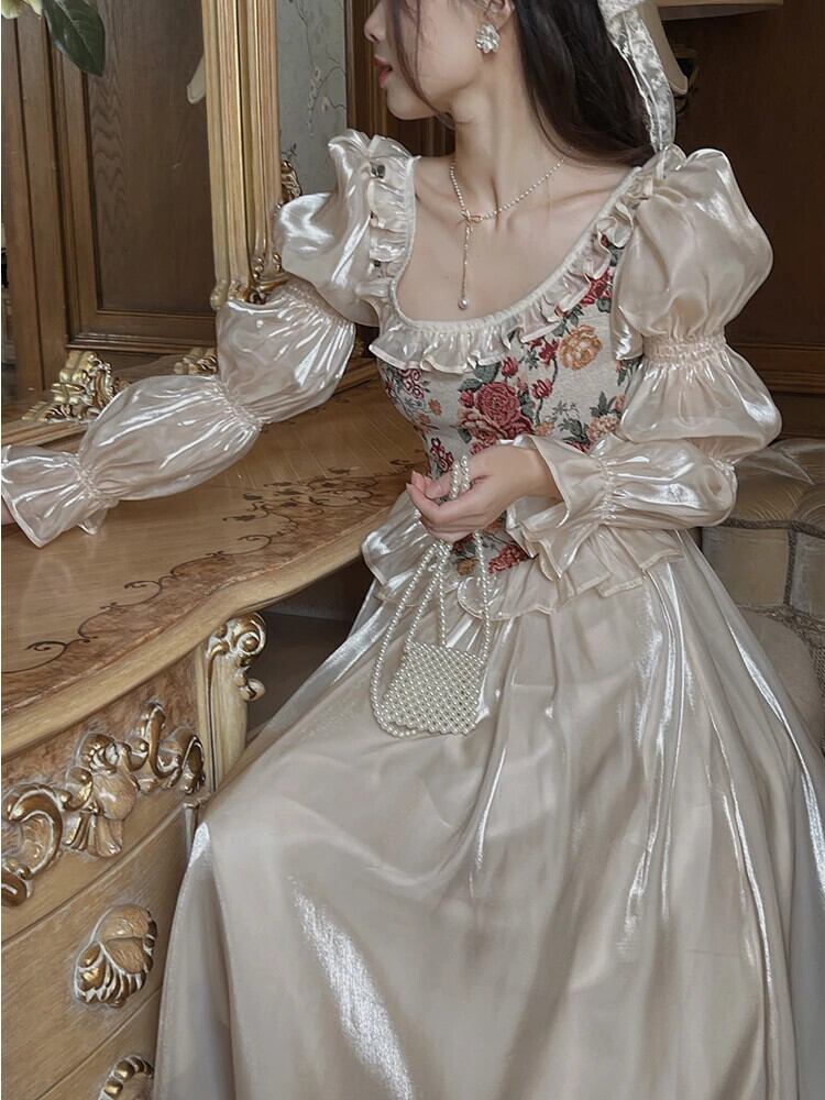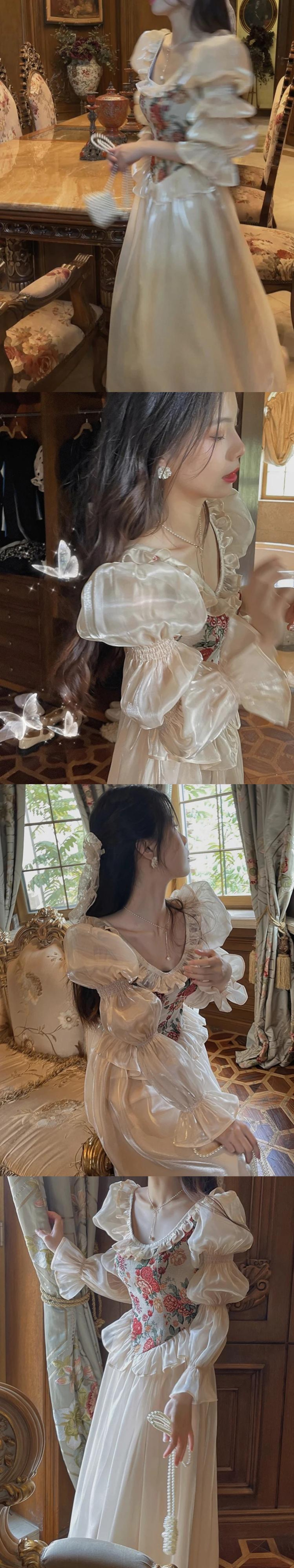 送料無料 ヴィンテージプリント花柄パフスリーブマキシドレス女性パーティーイブニング妖精ボディコンミディドレスビーチ ビンテージ AE008878770452810222