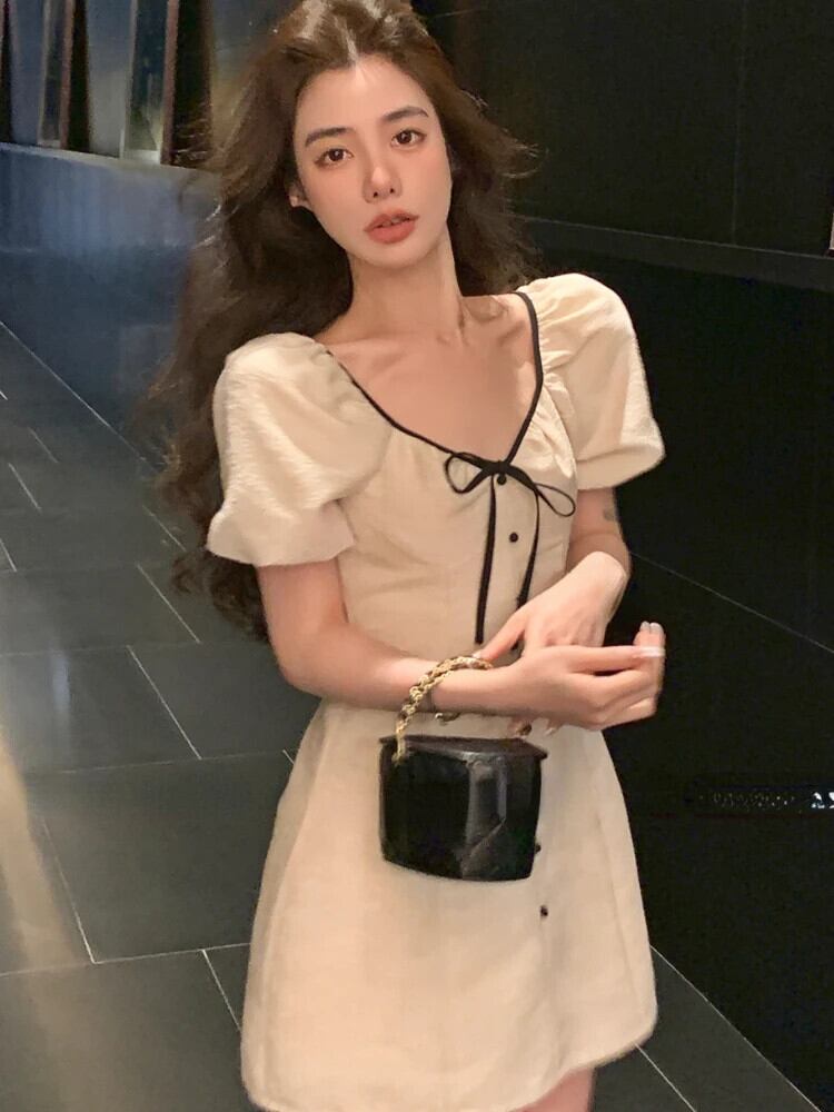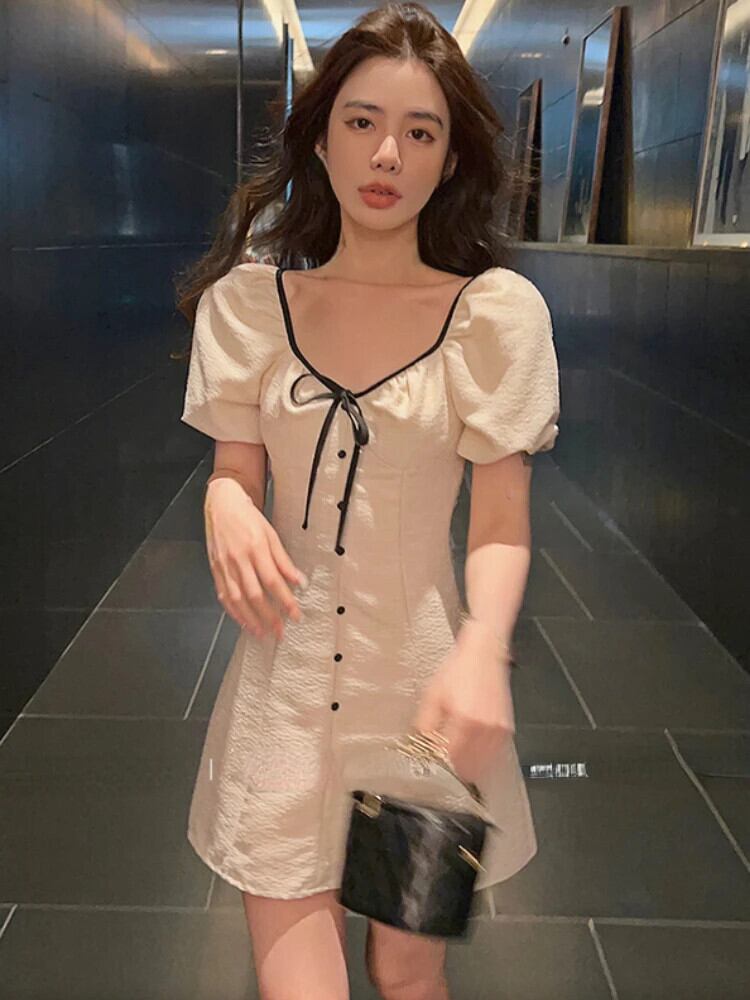 送料無料 ヴィンテージリボンドレス女性パーティードレスフリルボディコンドレス夏 2023 サマー 夏物 ビンテージ AE008878774335014531