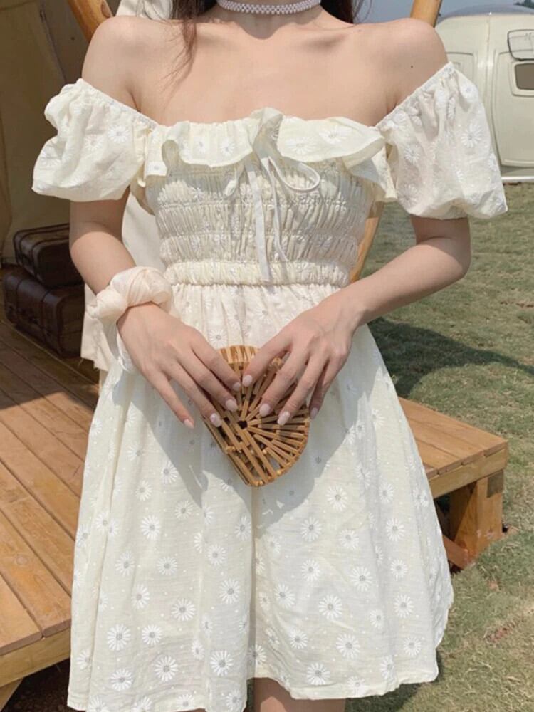 送料無料 フレンチドレスの女性白パフスリーブ妖精ドレスレースシフォンヴィンテージドレス Vestidos 夏 2022 ホワイト サマー 夏物 ビンテージ AE008878711455560144