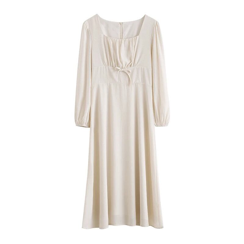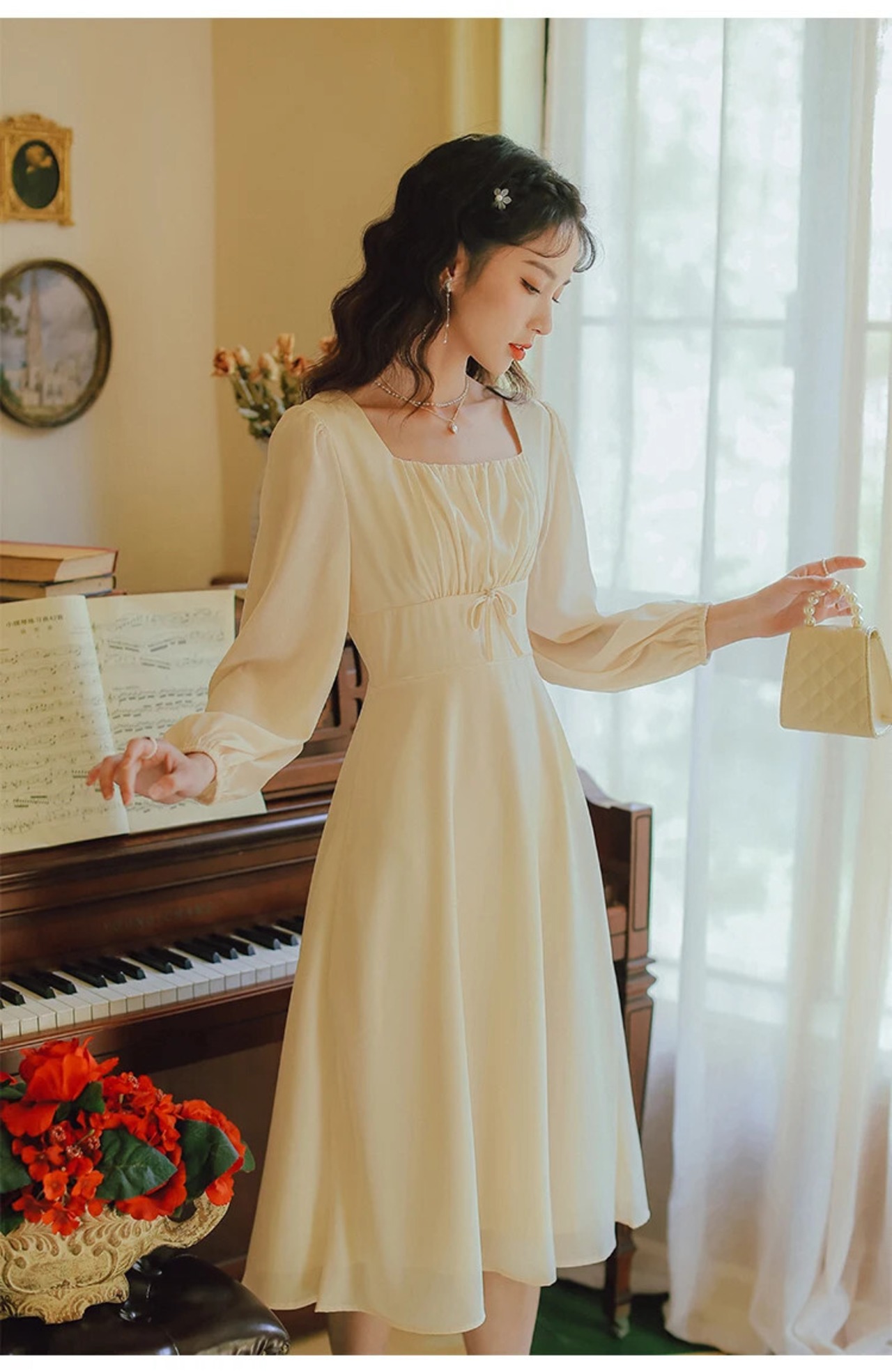 送料無料 Franse 長袖ソリッドカラーレースドレスヴィンテージシフォン e パーティーシックな優しいドレスマキシドレス女性 ロング ビンテージ AE008878780679507597