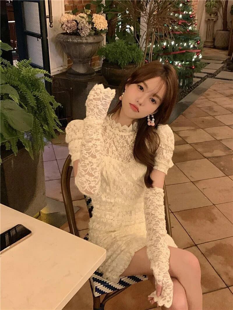 送料無料 レースミニドレス女性パーティーセクシーなボディコンドレスパファースリーブワンピースドレス秋 2023 オータム 秋物 AE008878729548641804