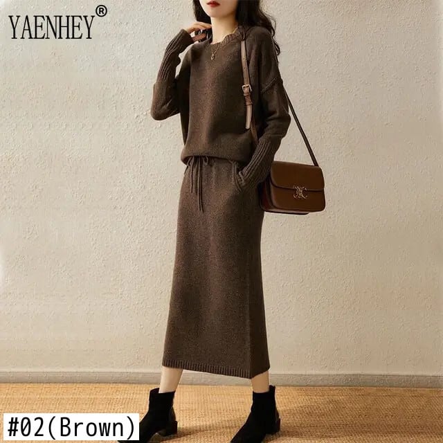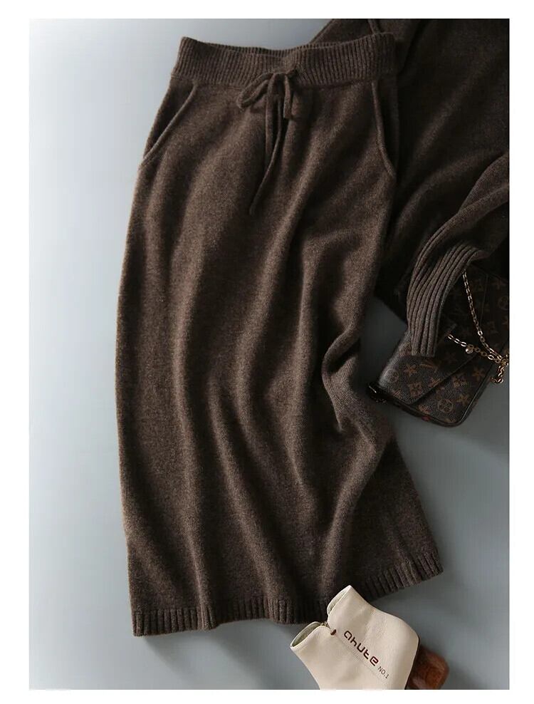 送料無料 ニットセーター包帯巾着ポケットスカート女性ウール 2 ツーピーススカートセットレディース衣装ルーズスーツ冬 2023 ウィンター 冬物 AE008878740294858400