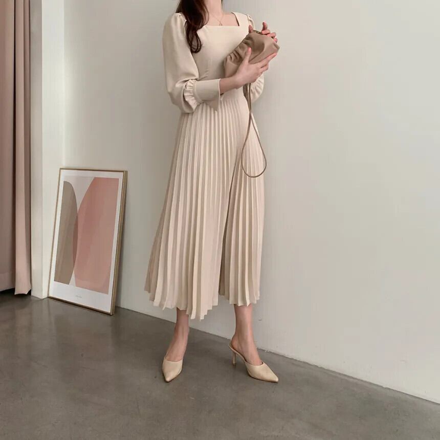 送料無料 ヴィンテージシックなプリーツひだパーティードレス女性長袖女性ボディコンドレスイブニング Vestidos 秋 2021 ロング オータム 秋物 ビンテージ AE008878769585761116