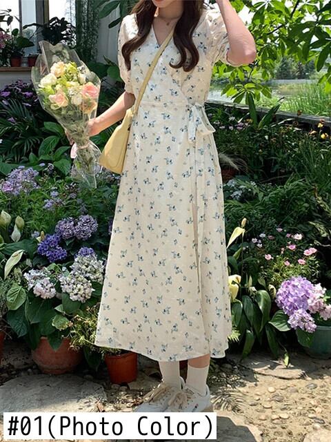 送料無料 原宿かわいいスウィートガールズ半袖 V ネック A ラインヴィンテージ ese スタイル花ロングマキシドレスの女性の夏 2022 ショート ハーフスリーブ 大人ガーリー キュート カジュアル サマー 夏物 花柄 Vネック Aライン ビンテージ AE008878711637357585