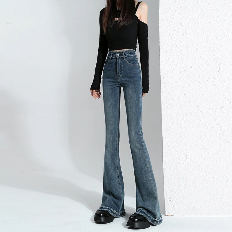 送料無料 ヴィンテージフレアジーンズ女性スタイルシックなスリム弾性デニムストリート全身女性のズボン春 2023 エラスティック 伸縮 スプリング 春物 ビンテージ AE008878744841949177