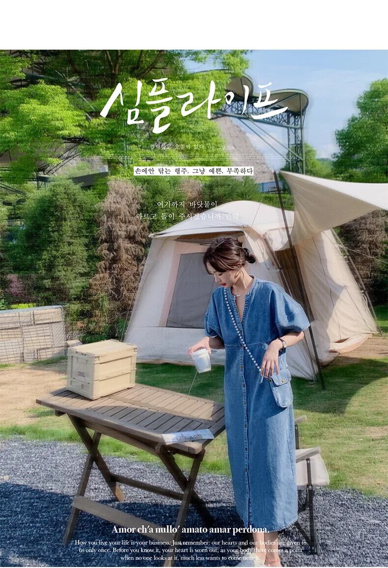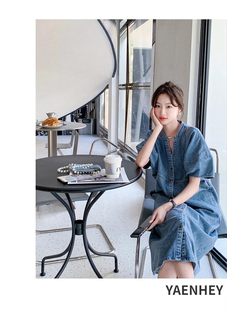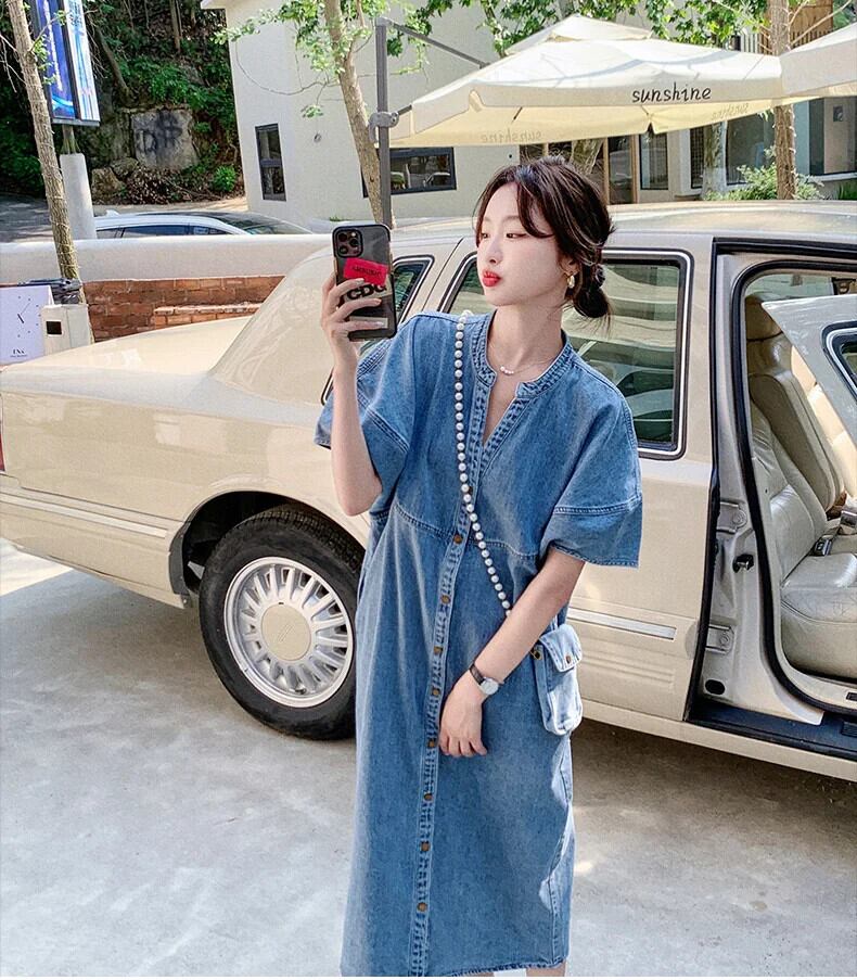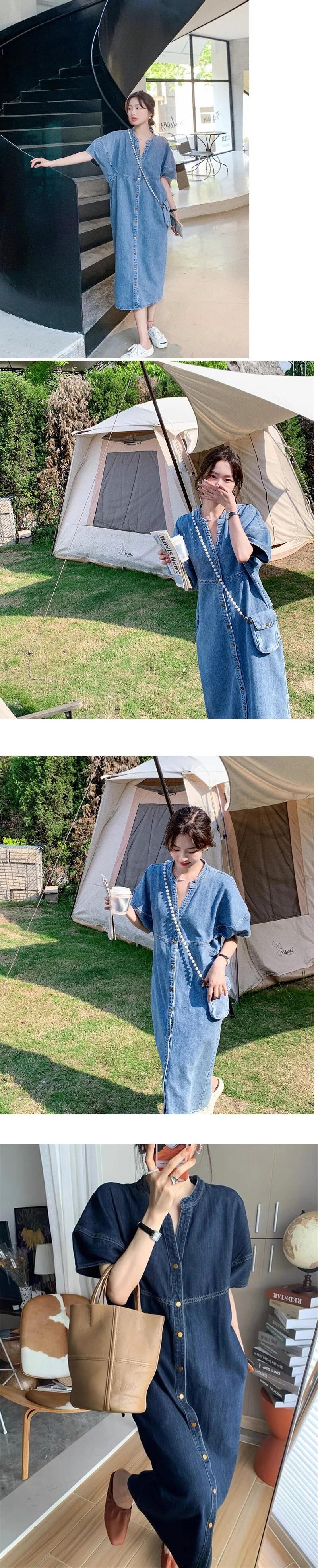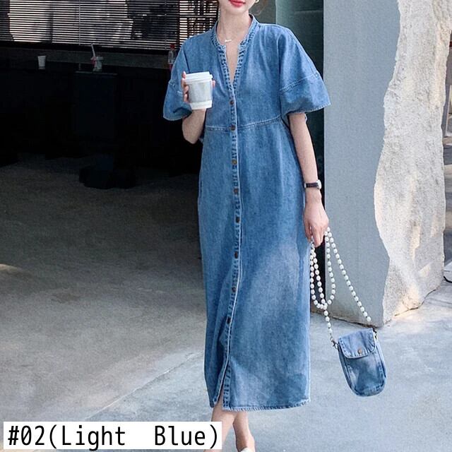 送料無料 ヴィンテージ V ネック薄いデニムミディドレス女性ストリートストレートビーチロングドレス夏 2023 サマー 夏物 Vネック ビンテージ AE00887878348224219