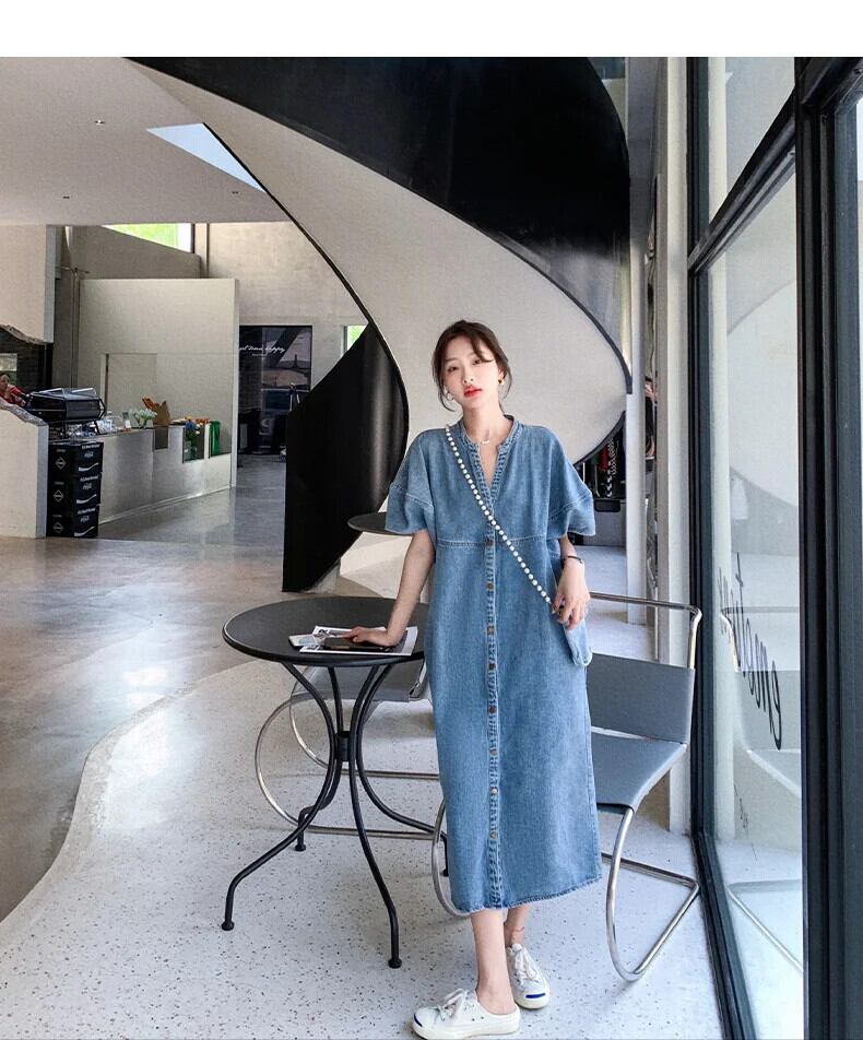 送料無料 ヴィンテージ V ネック薄いデニムミディドレス女性ストリートストレートビーチロングドレス夏 2023 サマー 夏物 Vネック ビンテージ AE00887878348224219 | 女性の為の通販サイト-fashion navi