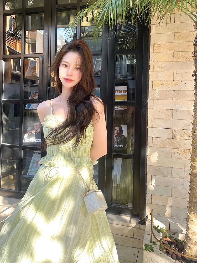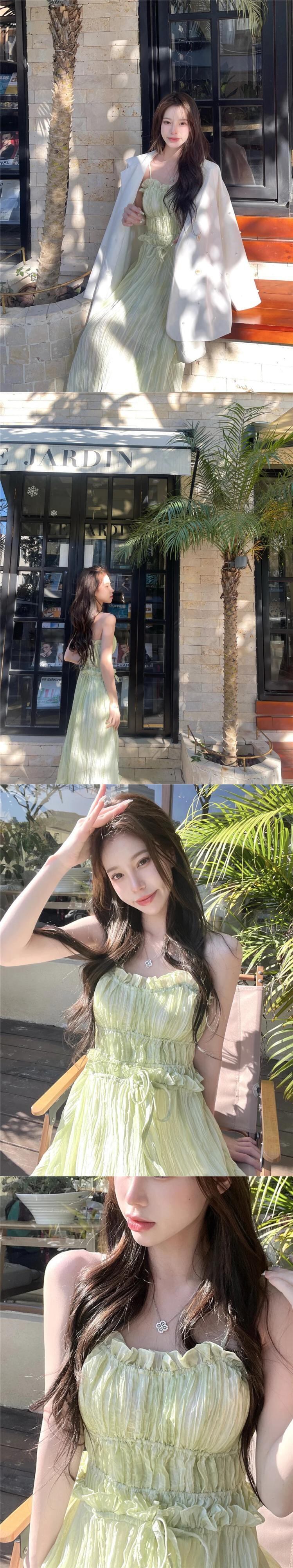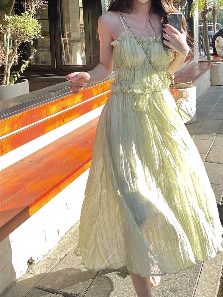送料無料 ヴィンテージ甘いストラップイブニングミディドレス女性パーティー妖精ビーチボディコンドレス夏 2023 グリーン 大人ガーリー スウィート キュート カジュアル サマー 夏物 ビンテージ AE008878743824552478