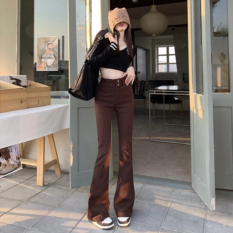送料無料 美脚ウエストフレアジーンズ女性ヴィンテージダブルブレストデニムパンツ女性ストリートロングスキニージーンズズボン ビンテージ AE00887872705769219
