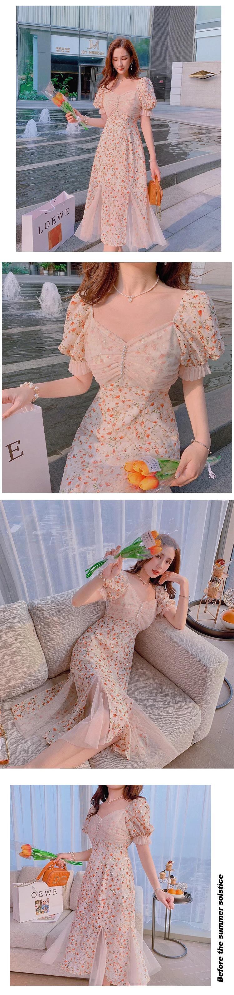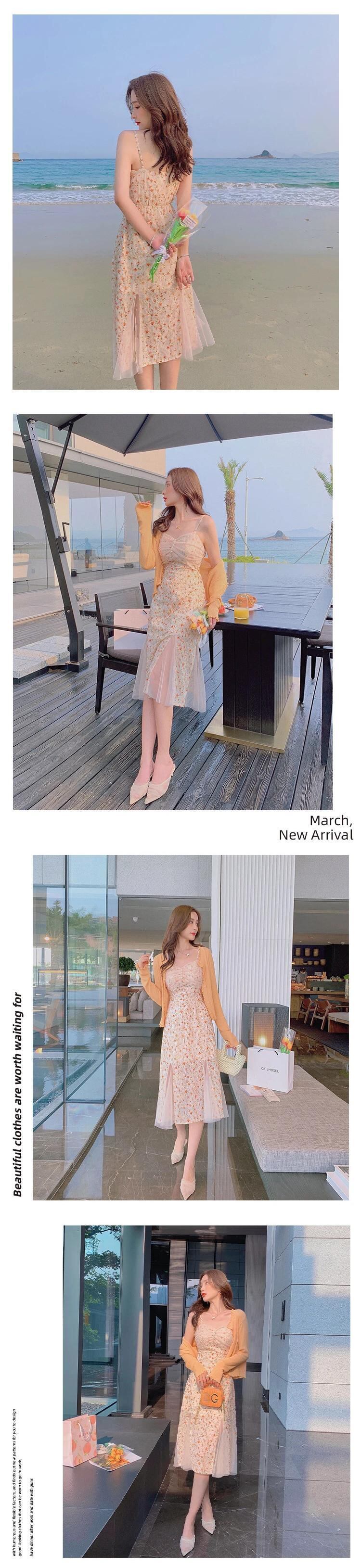 送料無料 ヴィンテージストラップシックなドレスの女性の花レースミディドレスビーチパーティーワンピースドレススタイル 2023 夏 サマー 夏物 花柄 ビンテージ AE00887872274806064