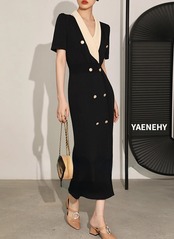送料無料 V ネックマキシドレス女性半袖スリムボディコンビジネスパーティー Vestidos イブニングドレスローブ春 ショート ハーフスリーブ スプリング 春物 Vネック AE008878758926394986