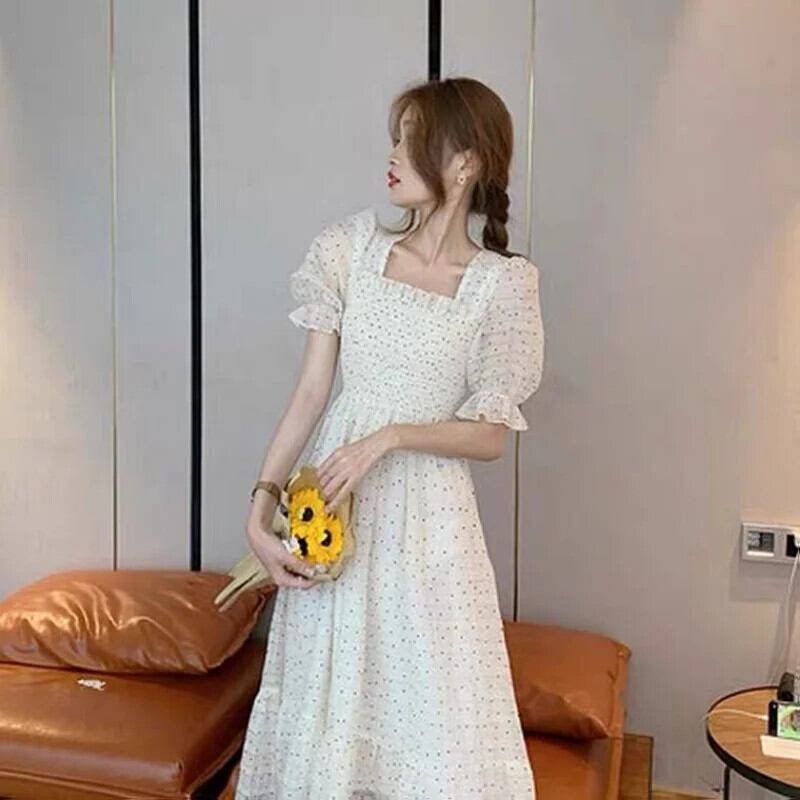送料無料 フローラルスイートレースドレス半袖シフォンドレススタイルスクエアカラーパーティードレスドット夏2022 ショート ハーフスリーブ 大人ガーリー スウィート キュート カジュアル サマー 夏物 花柄 スクウェア AE008878752709397356