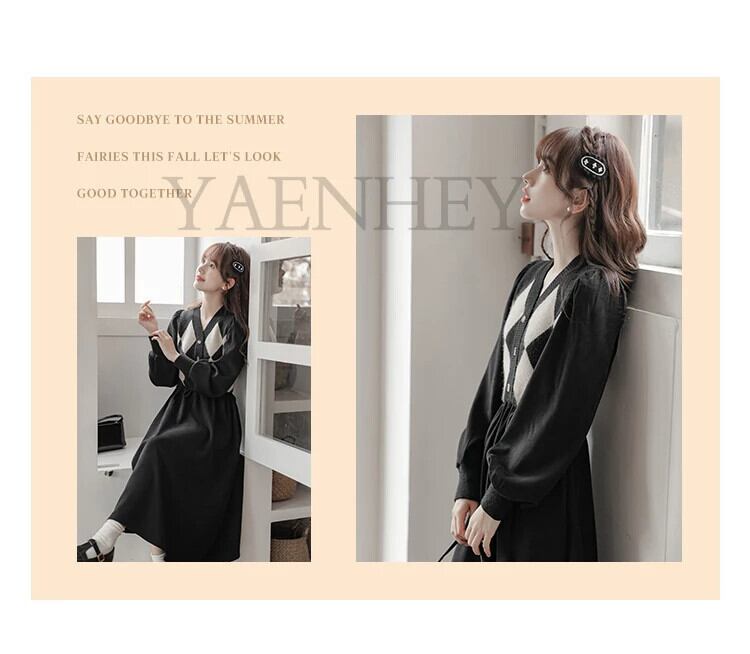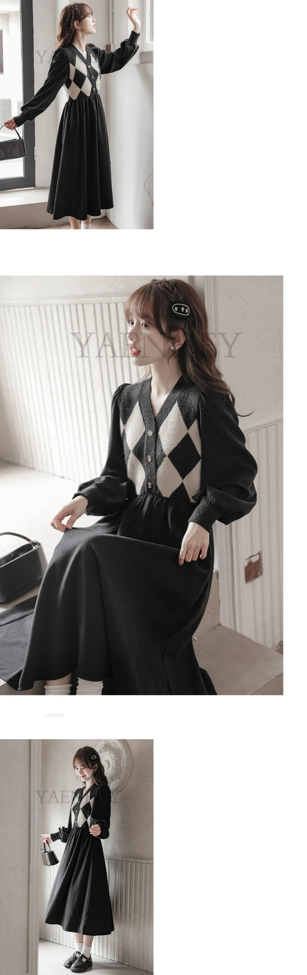 送料無料 ヴィンテージ長袖 V ネックニットセータードレス女性ストリートニットミディドレス冬 2023 暖かい ロング ウィンター 冬物 Vネック ビンテージ AE008878772980052739