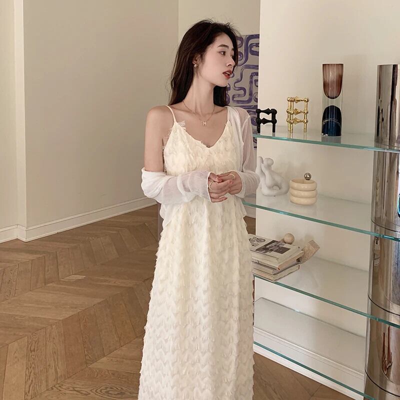 送料無料 夏の女性のスパゲッティストラップミディドレスノースリーブヴィンテージスリムパーティーウエディング Vestidos シックなレースのローブ服 サマー 夏物 ビンテージ AE008878728635900590