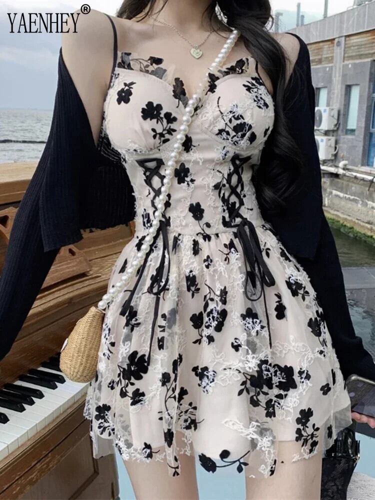 送料無料 甘いプリント長袖ニットカーディガンクロップコートツーピースドレス巾着花 V ネックフレンチサスペンダーローブスーツ女性 ロング 大人ガーリー スウィート キュート カジュアル 花柄 Vネック AE008878737367556407 | 女性の為の通販サイト-fashion navi