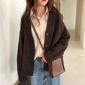 送料無料 女性カーディガンセータージャケット V ネックヴィンテージ 2022 ニット黒ニット無地原宿ルーズトップス ブラック かわいい Vネック ソリッドカラー ビンテージ AE00887879435243877