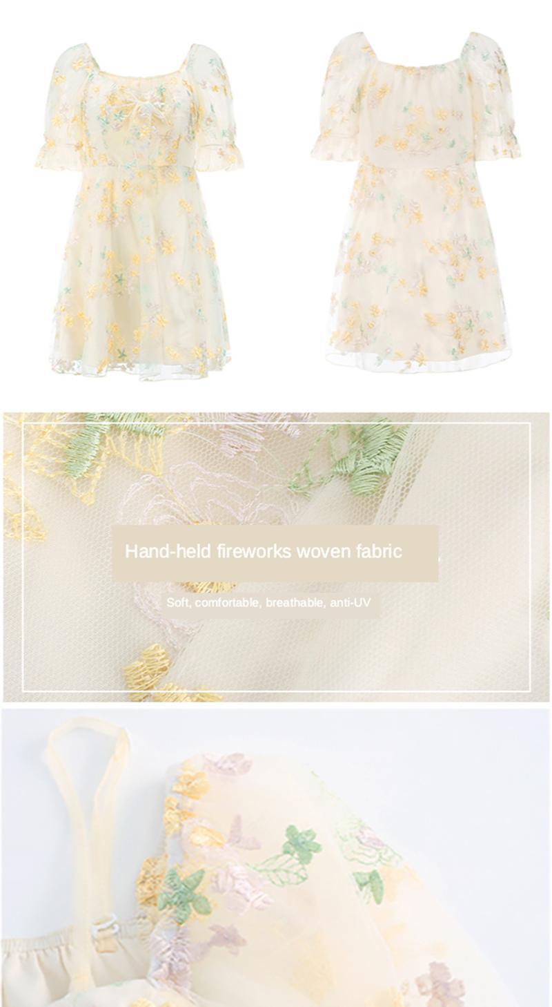 送料無料 E プレーリーシックな原宿ベージュセクシーな V ネックレースドレスサンドレスサマードレス女性 Vestido デ 2022 かわいい 夏物 Vネック AE008878773738173774