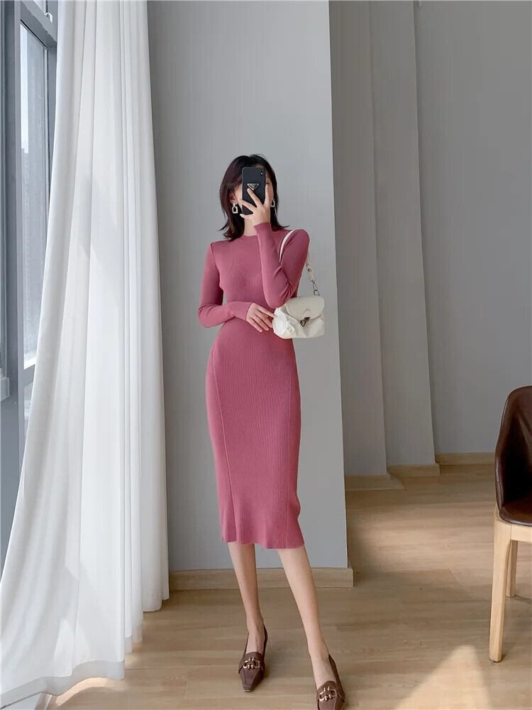 送料無料 ヴィンテージ固体セーターミディドレス女性スリムニットボディコンドレス Vestidos 秋冬 2023 オータム 秋物 ウィンター 冬物 ソリッドカラー ビンテージ AE008878766884169748 | 女性の為の通販サイト-fashion navi