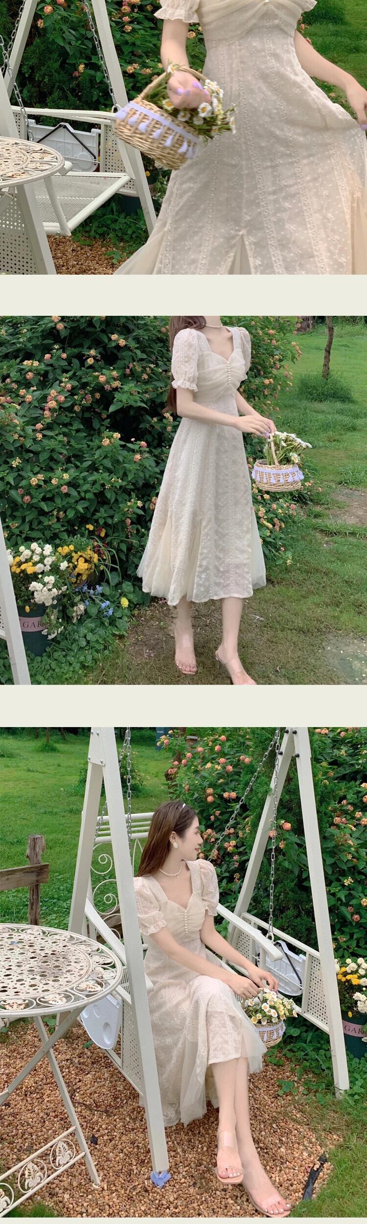 送料無料 Vinatge 甘いフレンチミディドレス女性半袖ビーズシフォンドレスパーティーワンピースドレス ショート ハーフスリーブ 大人ガーリー スウィート キュート カジュアル AE008878796899453780