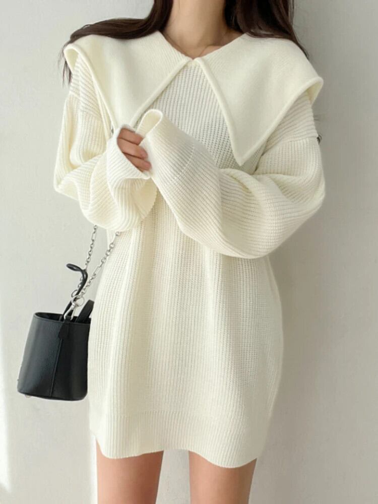 送料無料 ヴィンテージプルオーバールーズターンダウン襟厚い特大セーター長袖トップス女性秋冬 2022 服 ロング オータム 秋物 ウィンター 冬物 ビンテージ AE008878732116300459