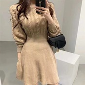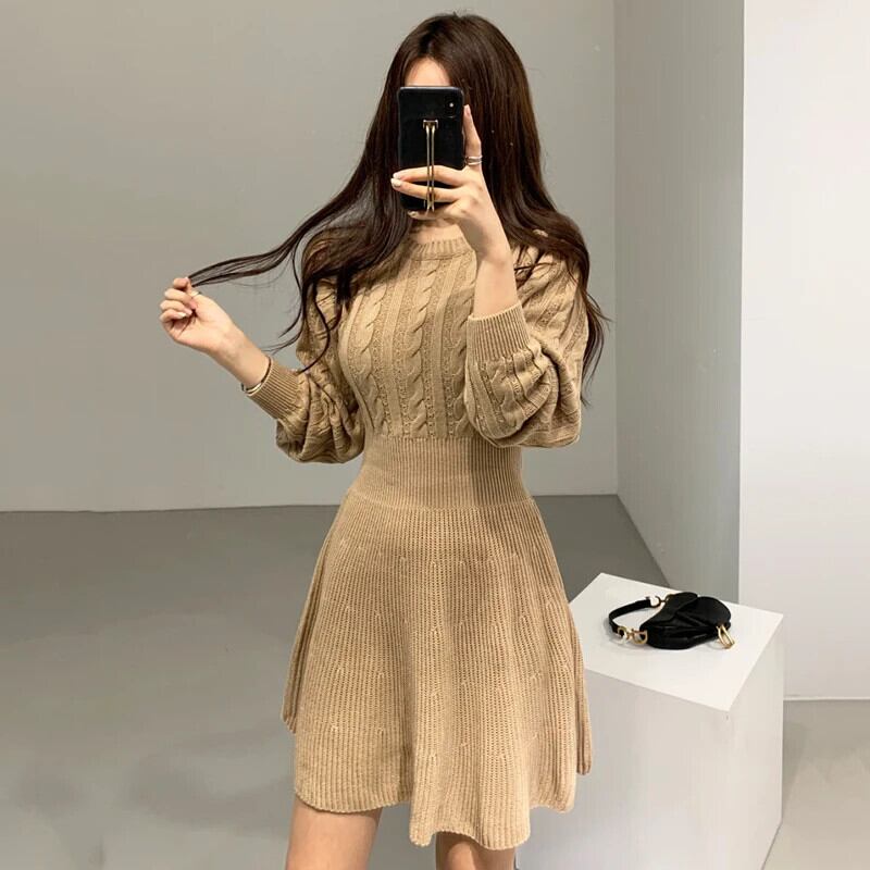 送料無料 秋冬ニットドレス女性ツイストパターン傘プリーツドレス厚いランタンスリーブミニセータードレス オータム 秋物 ウィンター 冬物 AE008878790312278134 | 女性の為の通販サイト-fashion navi