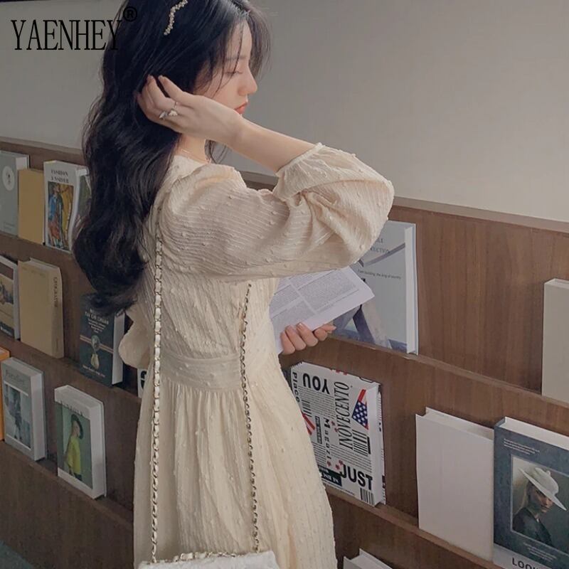 送料無料 ヴィンテージフレンチパフスリーブミディドレス女性パーティースパンコールドレス妖精の結婚式の服秋 2023 オータム 秋物 ビンテージ AE008878786852997863