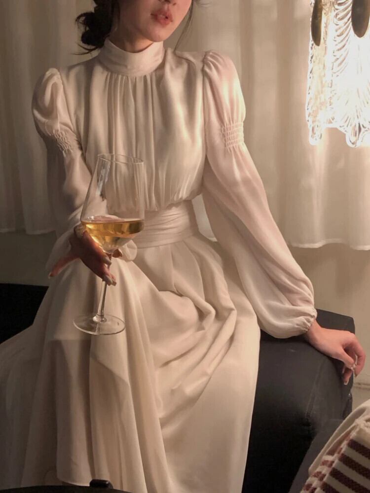 送料無料 ヴィンテージマキシドレス女性フレンチ長袖ボディコンミディドレス夏 2023 ホワイト ロング サマー 夏物 ビンテージ AE008878719073077864