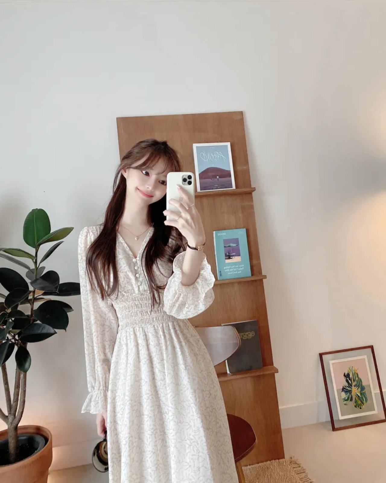 送料無料 ヴィンテージフレンチスタイル花柄 V ネックシフォンローブプリーツスリムウエストシフォンドレス女性秋 2023 Vestido オータム 秋物 Vネック ビンテージ AE008878798912720237