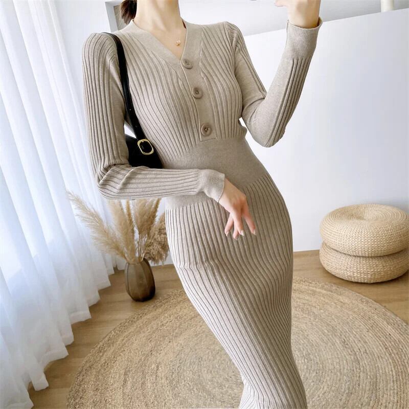 送料無料 ニットウェディングドレス女性パーティースリム V ネックイブニングボディコンミディドレスセーター暖かい Vestidos 秋冬 オータム 秋物 ウィンター 冬物 Vネック AE008878738562507844