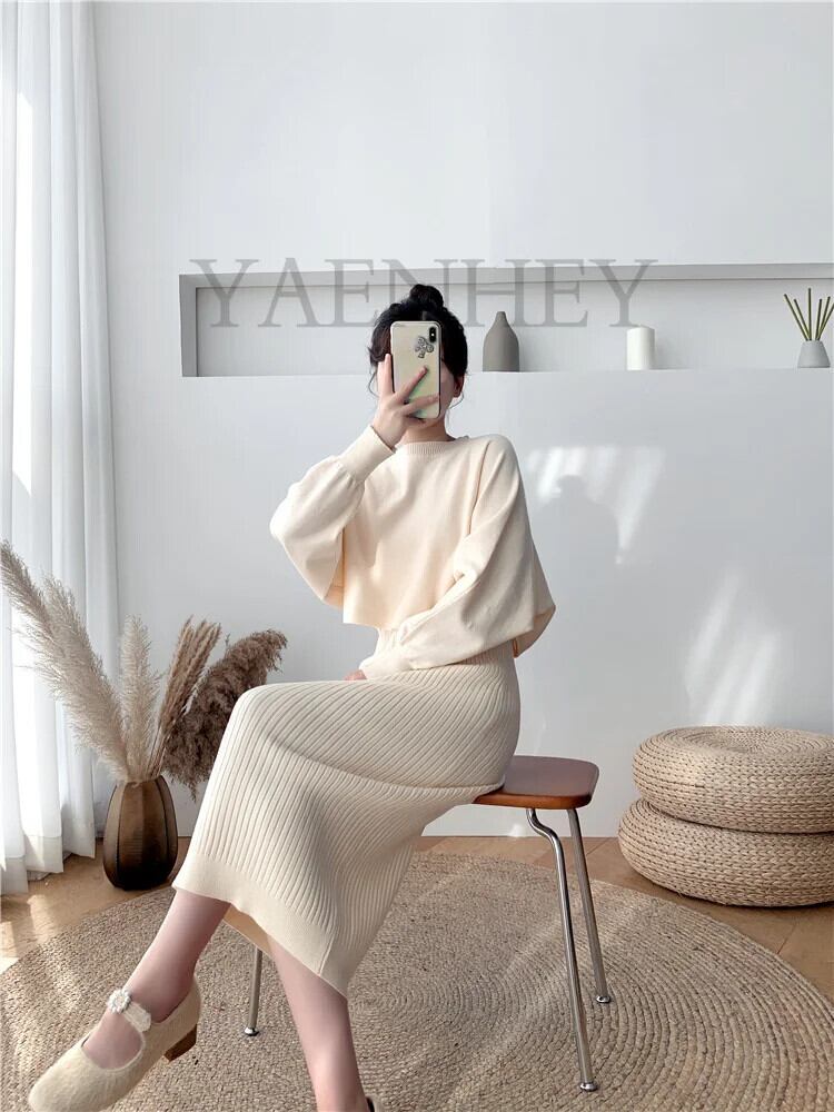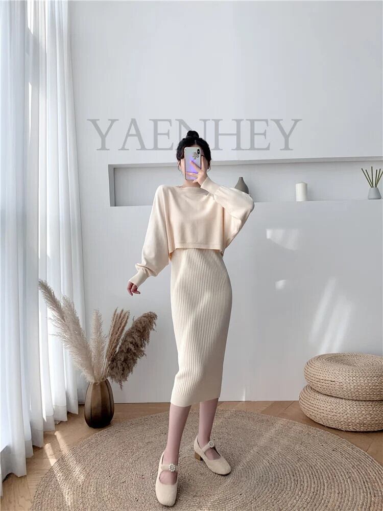 送料無料 ヴィンテージ 2 枚セットロングドレス女性秋冬 2023 ノースリーブニットドレスセーターセット暖かい ウィンター 冬物 ビンテージ AE008878769816063260