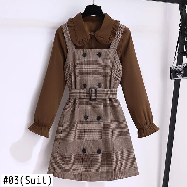 送料無料 ガールチェック柄ブラウスヴィンテージドレスノースリーブスーツ女性ドレスドレススーツブレースローブ Vestido 別売り ビンテージ AE008878720181017436