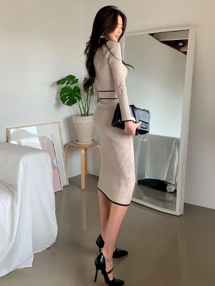 送料無料 ヴィンテージワンピースパッチワークスリム女性ドレス長袖ニットミディドレス女性セーターニットドレス秋 2022 服 ロング オータム 秋物 ビンテージ AE008878773086981512