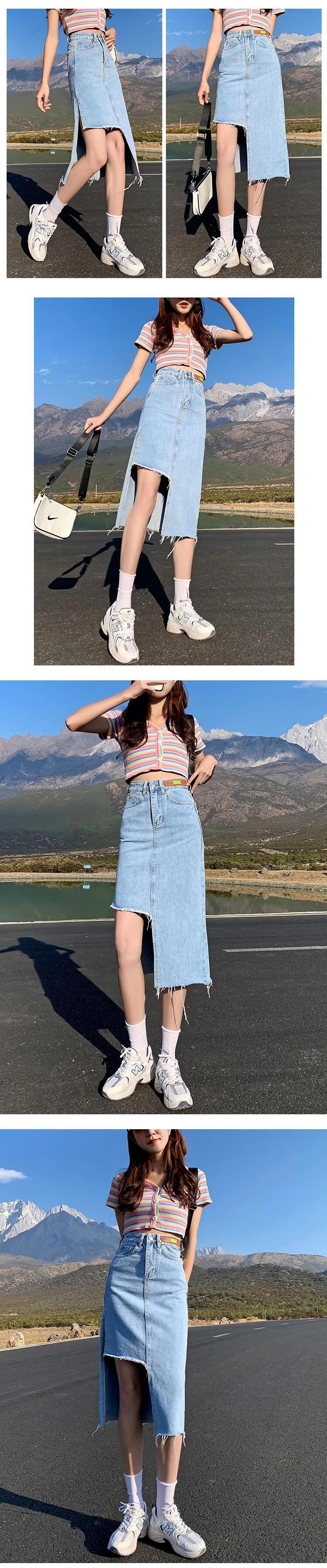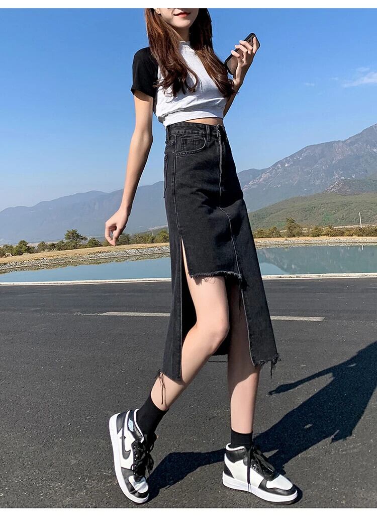 送料無料 夏 2023 女性のロングデニムスカートヴィンテージワーシトジーンズスカートストレートサイドスプリット A ラインペンシルスカートポケット サマー 夏物 Aライン ビンテージ AE008878752972921369