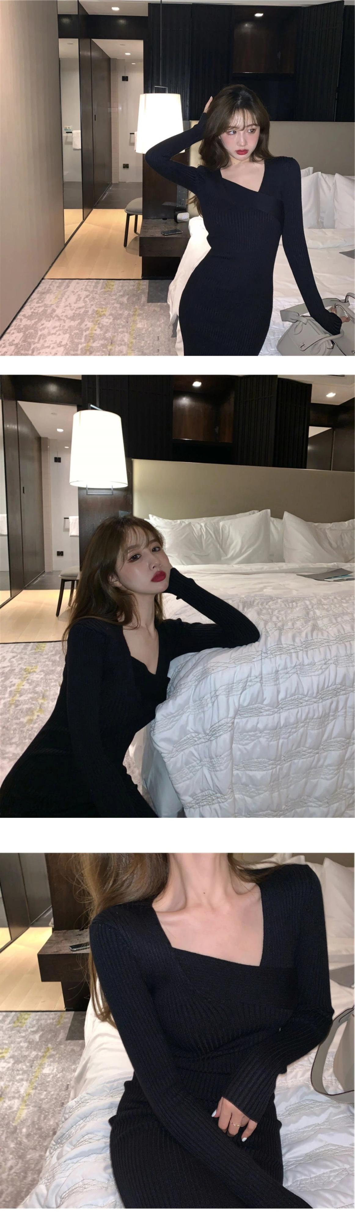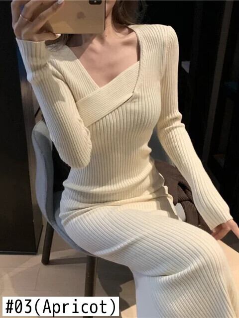 送料無料 ヴィンテージニットドレス女性長袖セーターパーティーオフィスレディスリムワンピースドレス秋 2022 ロング オータム 秋物 ビンテージ 会社 学校 通勤や通学にも AE00887875856878602