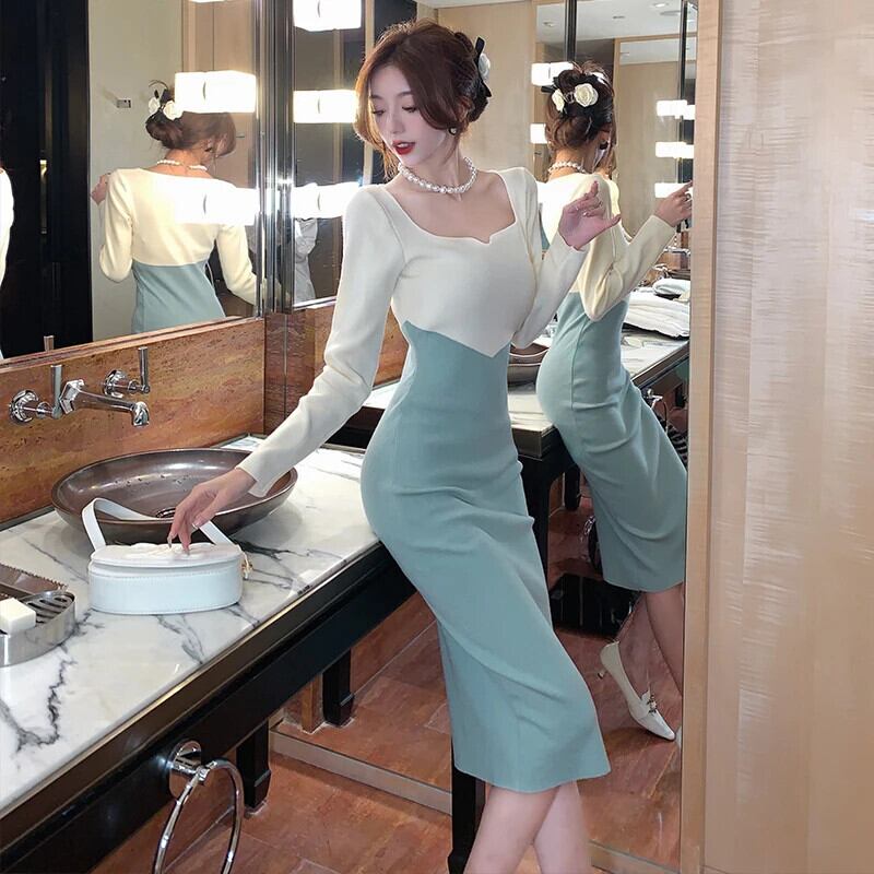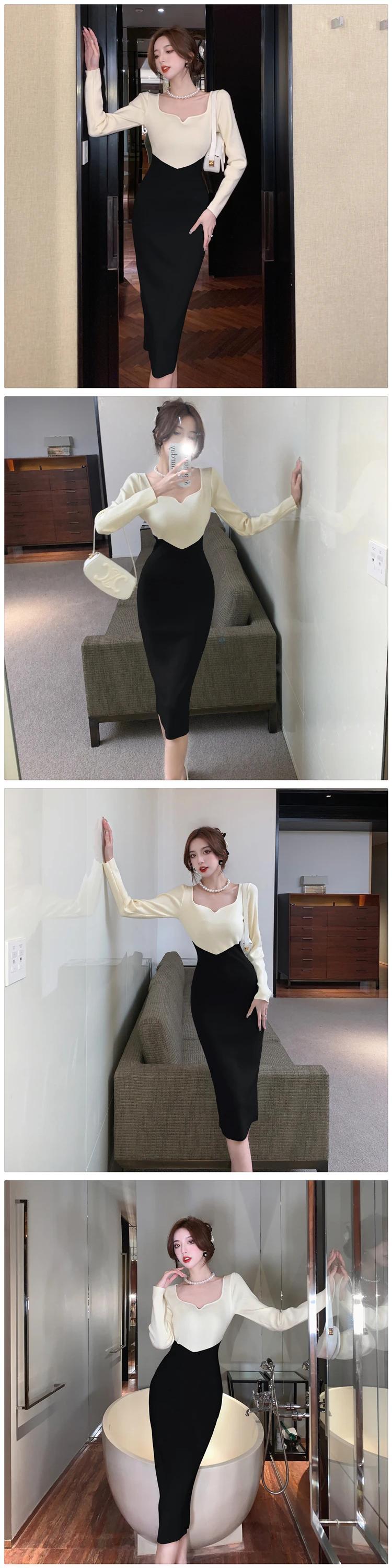 送料無料 ヴィンテージニットセーター Vestido シンプルシックなボディコンドレス女性オフィスシースペンシルミディドレス秋冬 2023 オータム 秋物 ウィンター 冬物 ビンテージ 会社 学校 通勤や通学にも AE008878731263618953