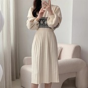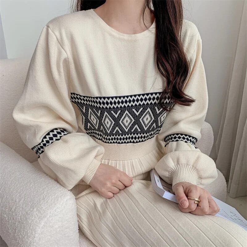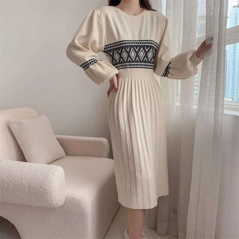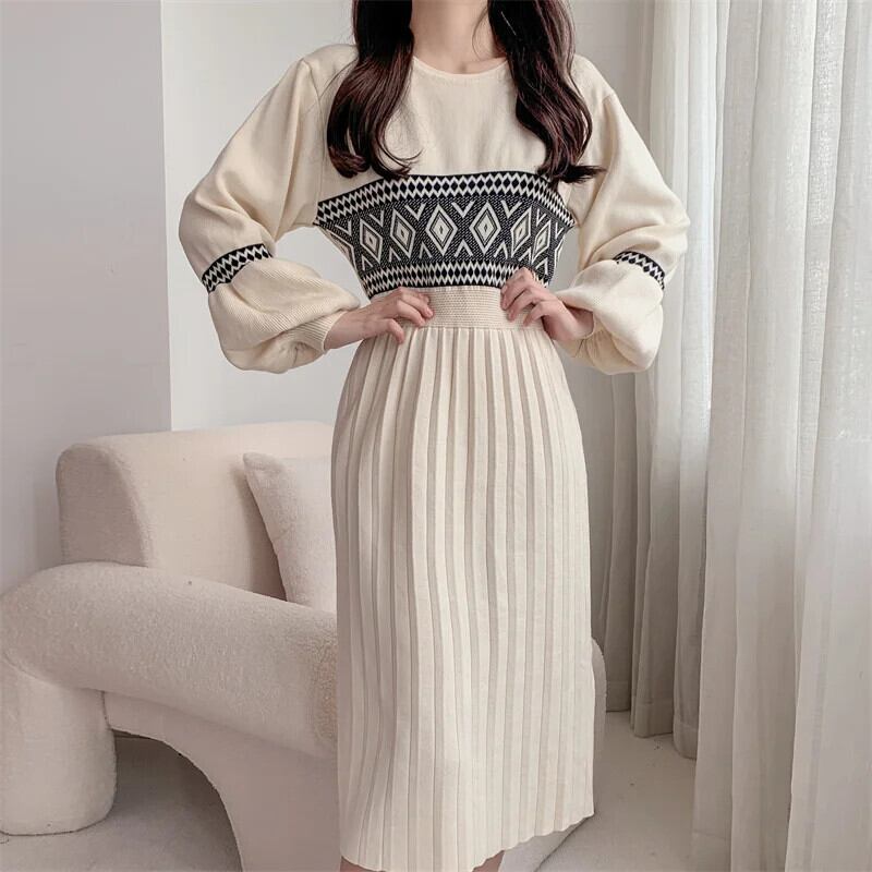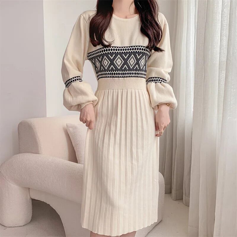 送料無料 菱形 O ネックニットヴィンテージパフスリーブボディコンドレス女性パーティーミディドレス Vestido 冬 ウィンター 冬物 Oネック ビンテージ AE00887875256329682