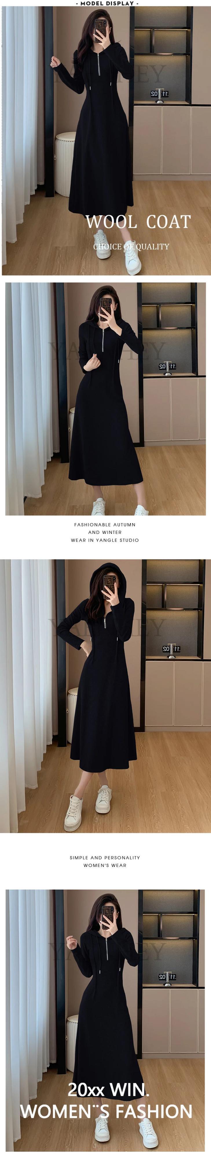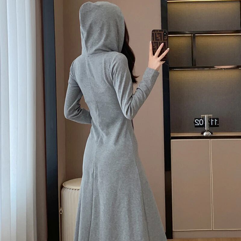 送料無料 ヴィンテージフード付きボディコンミディドレス女性暖かいスウェット長袖マキシ Vestidos 固体ローブ秋 2023 ロング シャツ オータム 秋物 ソリッドカラー ビンテージ AE008878785754603603