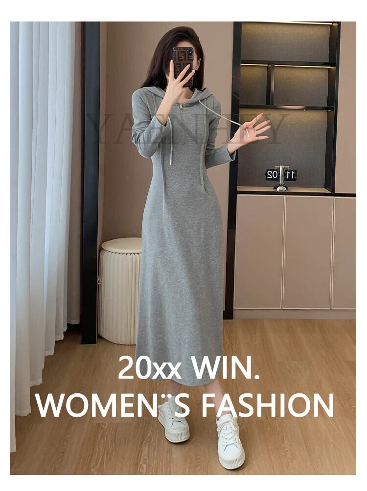 送料無料 ヴィンテージフード付きボディコンミディドレス女性暖かいスウェット長袖マキシ Vestidos 固体ローブ秋 2023 ロング シャツ オータム 秋物 ソリッドカラー ビンテージ AE008878785754603603 | 女性の為の通販サイト-fashion navi