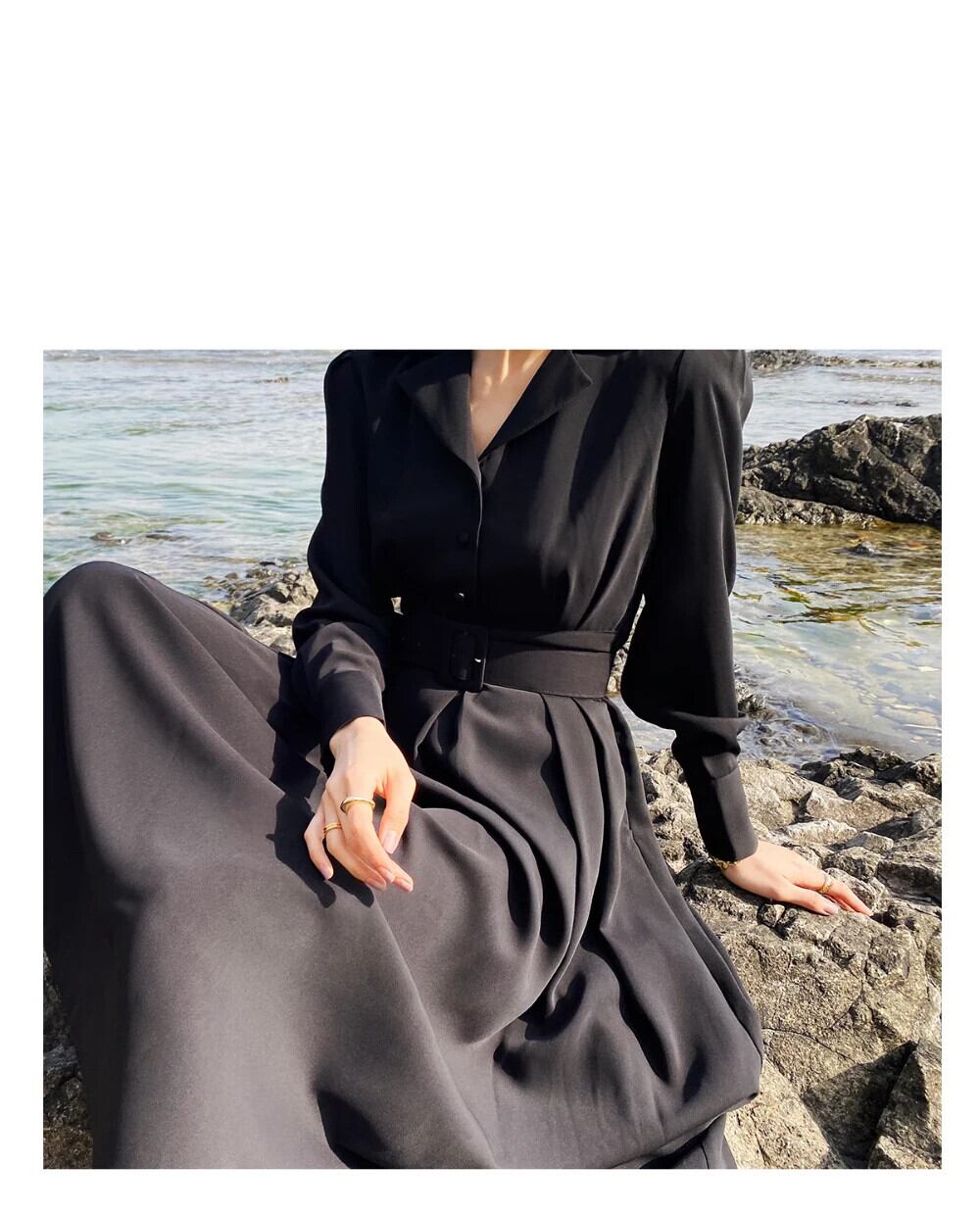 送料無料 ロングマキシドレス女性パーティーシングルブレスト秋冬ノッチカラードレス Vestidos ウエストビジネスブラック オータム 秋物 ウィンター 冬物 AE008878751641336861