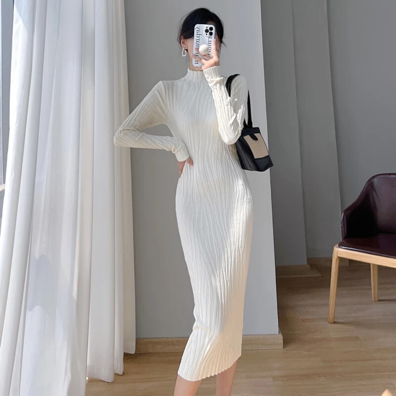 送料無料 固体ピットストライプニットボディコンドレス女性ハーフカラー長袖ドレス 2023 ストリートローブ ロング ソリッドカラー AE008878761088933250 | 女性の為の通販サイト-fashion navi