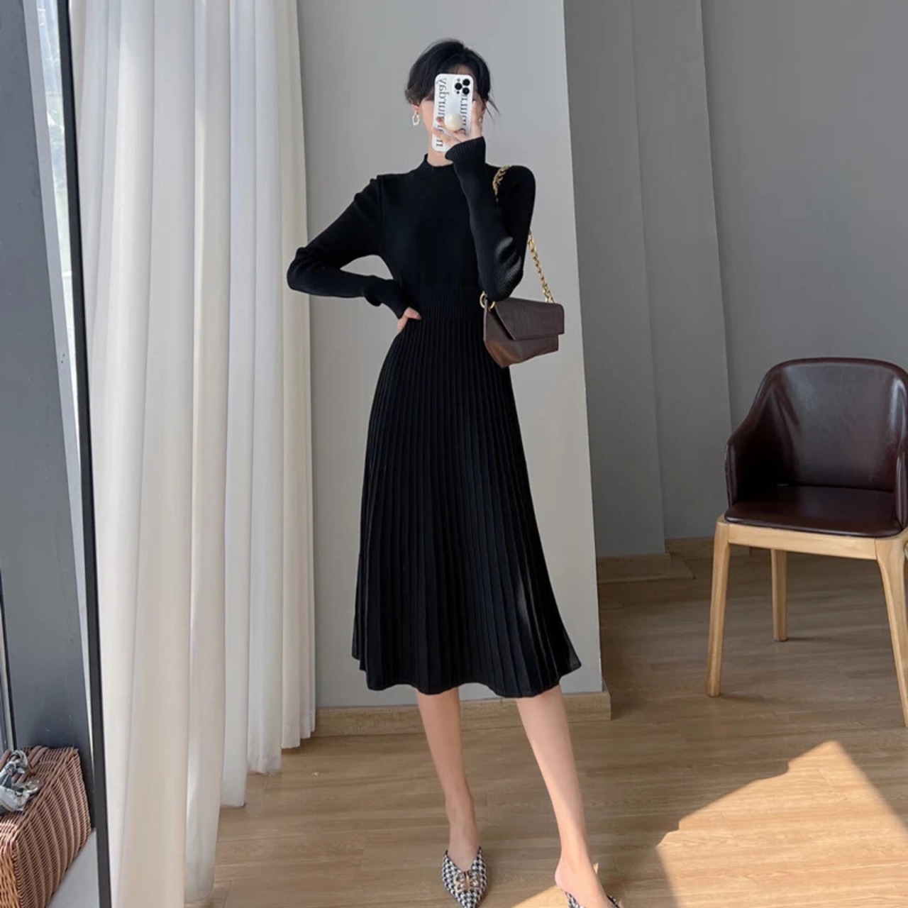 送料無料 ヴィンテージ固体ハーフカラーセーターミディドレス女性弾性プリーツ冬 2023 暖かいニットドレス エラスティック 伸縮 ウィンター 冬物 ソリッドカラー ビンテージ AE008878753572637674 | 女性の為の通販サイト-fashion navi