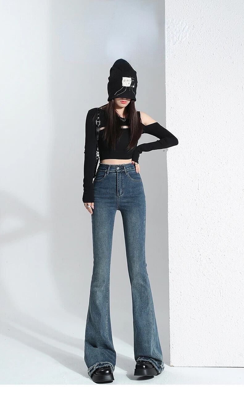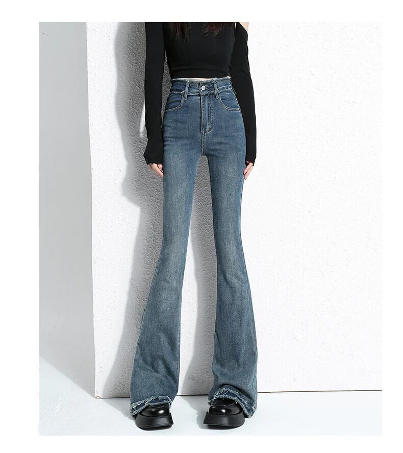 送料無料 ヴィンテージフレアジーンズ女性スタイルシックなスリム弾性デニムストリート全身女性のズボン春 2023 エラスティック 伸縮 スプリング 春物 ビンテージ AE008878753193935581