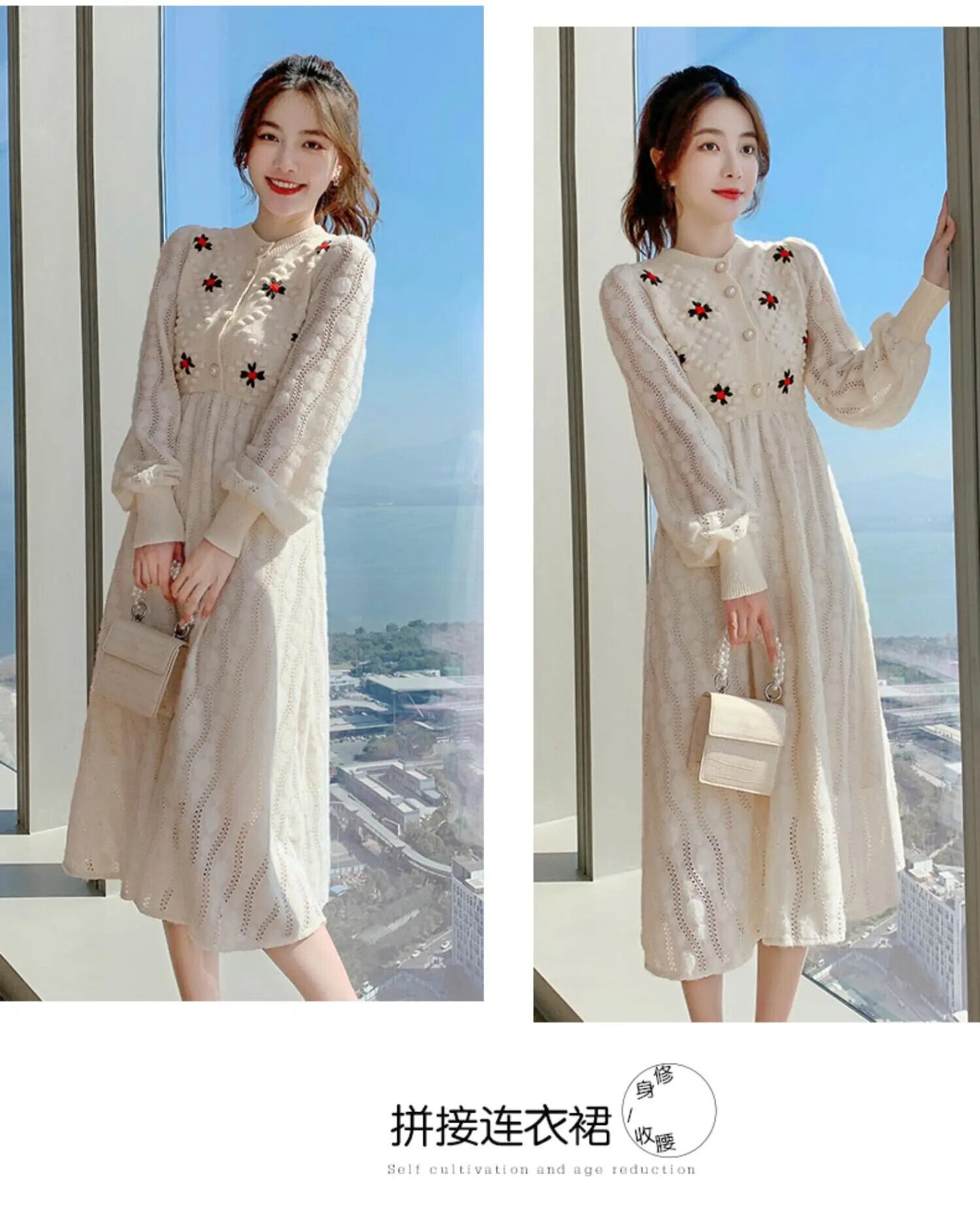 送料無料 ニットセーターマキシドレス女性スタイルスリム刺繍ウール長袖女性ドレスパーティー 2022 秋冬 ロング オータム 秋物 ウィンター 冬物 AE008878781360291988