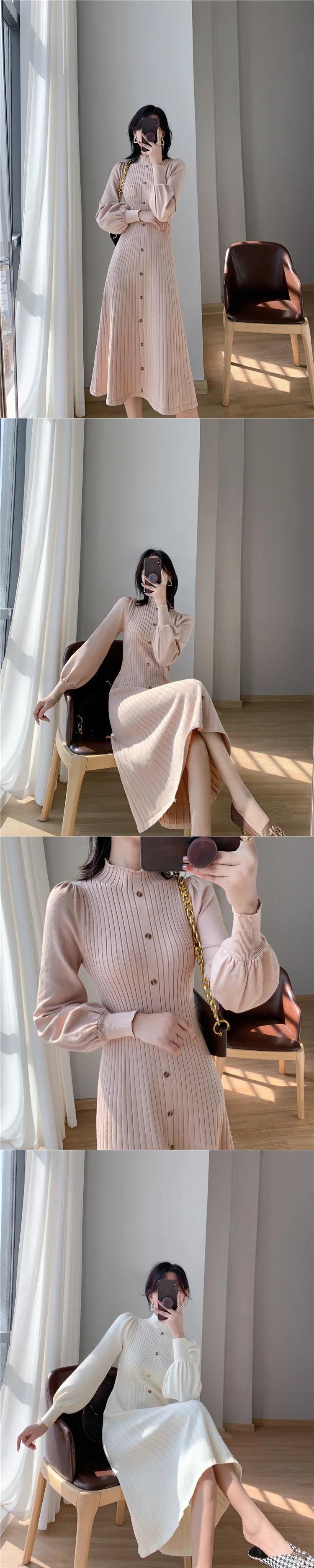 送料無料 ハーフカラーニットセーターミディドレス女性ニットドレス暖かい服秋冬 2023 オータム 秋物 ウィンター 冬物 AE008878762488856001