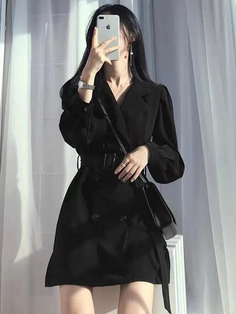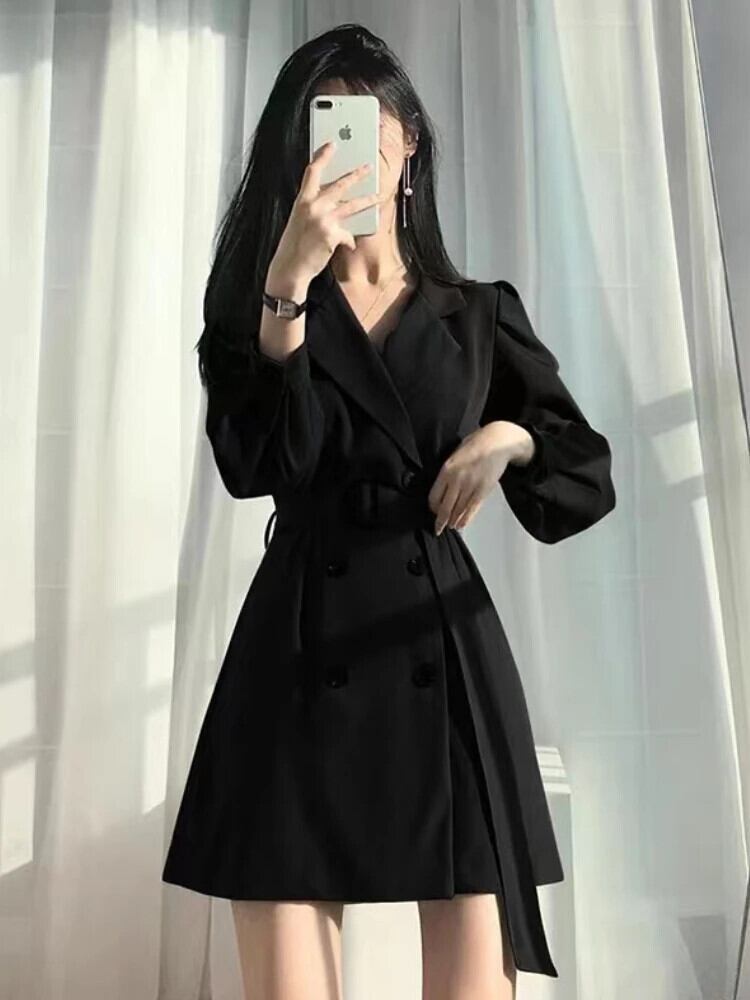送料無料 ヴィンテージノッチブラック長袖ジャケットスリムブレザーミニドレス女性のセクシーなボディコンドレス秋 2022 ロング オータム 秋物 ビンテージ AE008878760751173249